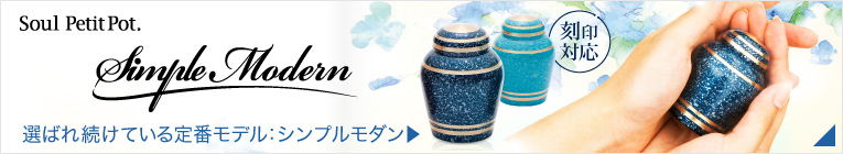 ソウルプチポット いつもそばに、いつまでも一緒に。大切な想いを納めてともに暮らすための器。ミニ骨壷 Soul Petit Pot―ソウルプチポット 。大切な人がずっとここにいてくれる、そんな思いが日々を輝かせてくれます。 絞り込み検索 機能別 置き型タイプ お出かけタイプ 写真立てタイプ ステージセット 特長別 刻印 口径が広い 素材別 ガラス製 木製 合皮製 金属製 陶磁器製 価格 〜30,000円 30,001円〜60,000円 60,001円〜90,000円 90,001円〜 検索キーワード 人気順 価格の安い順 価格の高い順 新着順 1 - 24 件を表示中(全147件) ミニ骨壷 クラウン C-1 17,600円 お気に入り ミニ骨壷 クラウン C-2 17,600円 お気に入り ミニ骨壷 クラウン C-3 17,600円 お気に入り ミニ骨壷 クラウン C-4 17,600円 お気に入り ミニ骨壷 シンプルモダン ピュアホワイト【刻印対応可】 33,000円 お気に入り ミニ骨壷 シンプルモダン フロストホワイト【刻印対応可】 33,000円 お気に入り ミニ骨壷 シンプルモダン スターライトブルー【刻印対応可】 33,000円 お気に入り ミニ骨壷 シンプルモダン スカイブルー【刻印対応可】 33,000円 お気に入り ミニ骨壷 シンプルモダン エバーグリーン【刻印対応可】 33,000円 お気に入り ミニ骨壷 シンプルモダン スウィートピンク【刻印対応可】 33,000円 お気に入り ミニ骨壷 蒔絵 春秋流水 26,400円 お気に入り ミニ骨壷 蒔絵 帯春秋 26,400円 お気に入り ミニ骨壷 蒔絵 さくら 26,400円 お気に入り ミニ骨壷 蒔絵 ゆり 26,400円 お気に入り ミニ骨壷 蒔絵 ききょう 26,400円 お気に入り ミニ骨壷 シンプルモダン パールピンク【刻印対応可】 33,000円 お気に入り ミニ骨壷 メモリアルフォトスタンド アイボリー 17,600円 お気に入り ミニ骨壷 メモリアルフォトスタンド ミルキーピンク 17,600円 お気に入り ミニ骨壷 メモリアルフォトスタンド サックスブルー 17,600円 お気に入り ミニ骨壷 メモリアルフォトスタンド キャメル 17,600円 お気に入り ミニ骨壷 メモリアルフォトスタンド ワインレッド 17,600円 お気に入り ミニ骨壷 メモリアルフォトスタンド ダークブラウン 17,600円 お気に入り ミニ骨壷 蒔絵あわせ 春秋流水 33,000円 お気に入り ミニ骨壷 蒔絵あわせ 春秋花筏 33,000円 お気に入り 前へ 1 2 3 4 5 6 7 次へ 商品を購入する 全国の葬儀社・仏壇店でお買い求めいただけます。 店舗を探す オンラインショップ 商品カテゴリから探す 置き型タイプ 9,350円(税込)~ お出かけタイプ 13,200円(税込)~ 写真立てタイプ 16,610円(税込)~ ステージセット 24,750円(税込)~ ミニ骨壷とは 手元に置ける小さな骨壷 ミニ骨壷は、大切な人のご遺骨を自宅に置くことのできる骨壷です。一般的な本骨壷に比べ、高さ6センチ前後の小さなサイズで、お部屋やインテリアに馴染むおしゃれなデザインが特徴です。 近年関心が高まる「手元供養」の一つ まだ離れがたい、大切な人が亡くなった後も共に生きたいという想いから、近年選ばれているのが、遺骨を身近に持つ「手元供養」です。ミニ骨壷のほか、他にペンダントに納める遺骨ペンダントなどもあります。 手元供養は難しいことではない 遺骨やミニ骨壷と言っても、取り扱いは決して難しいものではありません。お墓への納骨や散骨前の本骨壷から、ミニ骨壷の大きさに合わせて少量ご遺骨を取り分けます。親子や兄弟同士でそれぞれ分けて持つ方も。 家族で共に、これからも暮らす 家族が集まる家で、これからも共に団欒を過ごす。生活の瞬間にいつもそばに。旅行先などの特別なシーンで、一緒に想い出を作る。そんな想いを叶えるのがミニ骨壷、ソウルプチポットです。 ひとつひとつの想いから発想 大切な人の好みにかなうもの。残された方の励ましになるもの。そんな願いから、ひとつひとつのデザイン・アイデアが生まれます。 上質で本物の素材 ずっしりと重みのある金属製、温かみのある木製、素材感から耐久性まで厳しく吟味しています。いつまでもかわらぬ想いと美しさで大切な人を包みます。 手元供養の方法についてもっと知る ミニ骨壷を購入したお客様の声 50代 手のひらにのせて両手で包み込める大きさで、亡き母と繋がりあえる気がして、抱きしめているように感じられ、想い出が走馬灯のようにうかび、涙がでて止まらなくなりますが、いつも一緒でそばにいてくれると思うと、頑張ろうという気持ちが少しづつですが、わいてきて毎日元気でいなくてはと一歩ずつ前に進めるような気がします。 購入商品:ポポ 50代 思った以上に素敵な商品で、とても満足しています。冷たい感じのする陶器製でないものをさがしていたところ、これを見つけました。生きていたちきと同じように一緒にいる気持ちになれます。ありがとうございます。 購入商品:キナリ 70代 携帯によし、安置によしの形態と大きさで気に入っています。この種の機能から(携帯をするため)ストラップが欲しい 購入商品:CROWN 30代 急逝だったので、心の整理がつかなく、近くに居てほしいと思い購入しましたが、良かったです。かなしくてショ